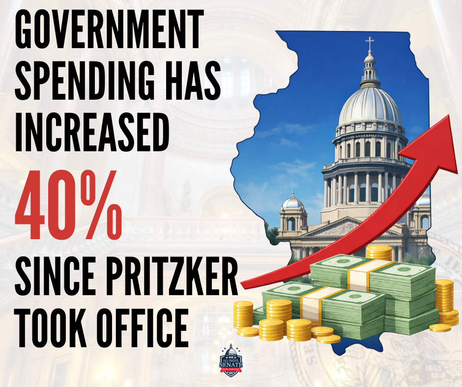 Under the Governor’s proposal, government spending would exceed $56 billion with only a $23 million cushion in expected revenue. Senate Republicans warned that the plan is propped up by more than $700 million in new taxes and gimmicks. They also noted that since 2019, Gov. Pritzker has increased government spending by nearly 40 percent, a pace that far outstrips the growth most Illinois residents have seen in their paychecks.
